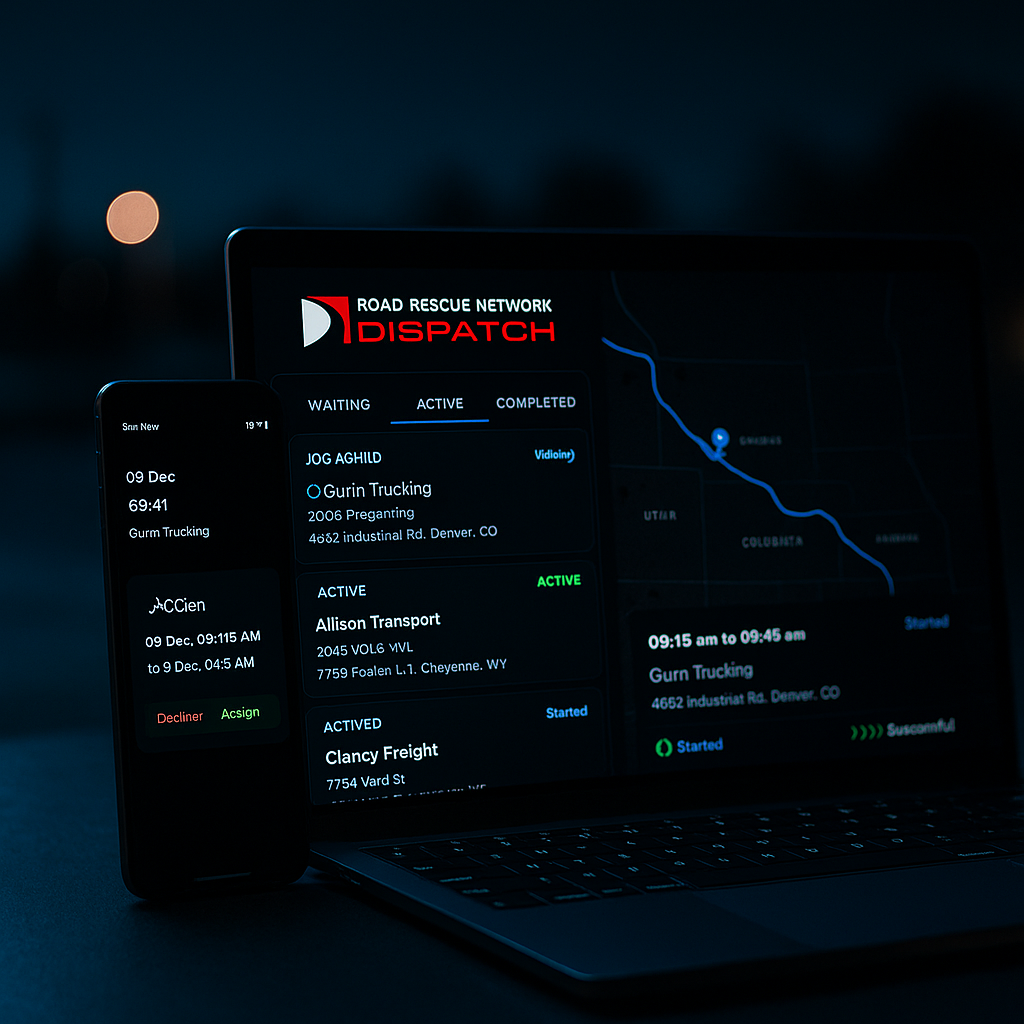 Road Rescue Network – Dispatch gives your team everything needed to manage heavy-duty service operations from one streamlined platform. Assign technicians, track jobs, automate updates, capture documentation, and monitor performance in real time. Faster communication, smarter routing, and complete visibility ensure every breakdown is handled accurately, professionally, and profitably.